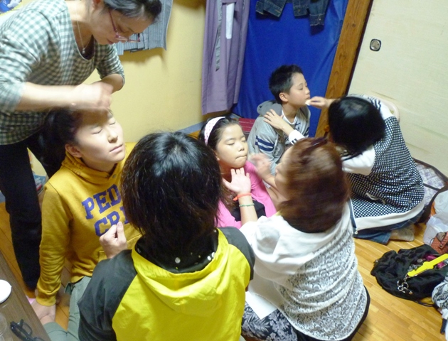 今回は式見ふるさとまつりを目前にして、舞台用化粧のお稽古でした。