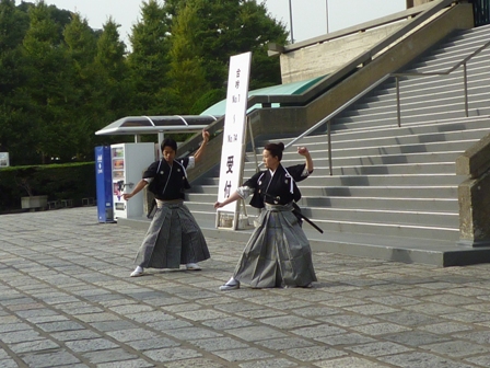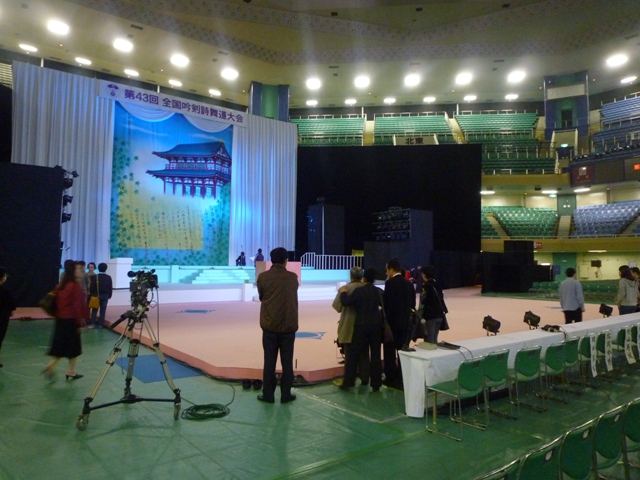 ホテルには一切寄らず、まっすぐ武道館に向かい、11時過ぎに到着、他の出演する先生方が揃うのを待って舞台の下見をしてから着替え。 もちろん本番と同じ衣装です。