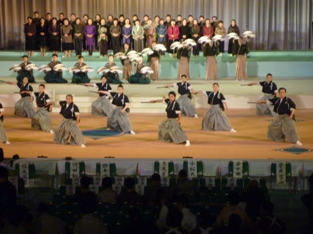 恐ろしい数の参加者に圧倒されながら入場し、出演が午前中に回ってくるとのことでしたので大急ぎで着替えて、吟詠のみなさん達との写真撮影なども行い、ギリギリまでみんなで動きの最終調整などをやりながら出番を待ちました。